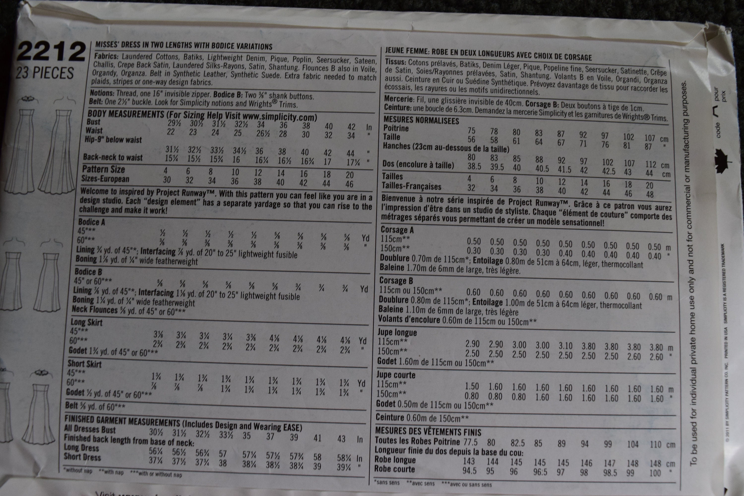 Simplicity Sewing Pattern 2212 Project Runway Inspired Misses Dress Sz 12 20 39363622123 Ebay